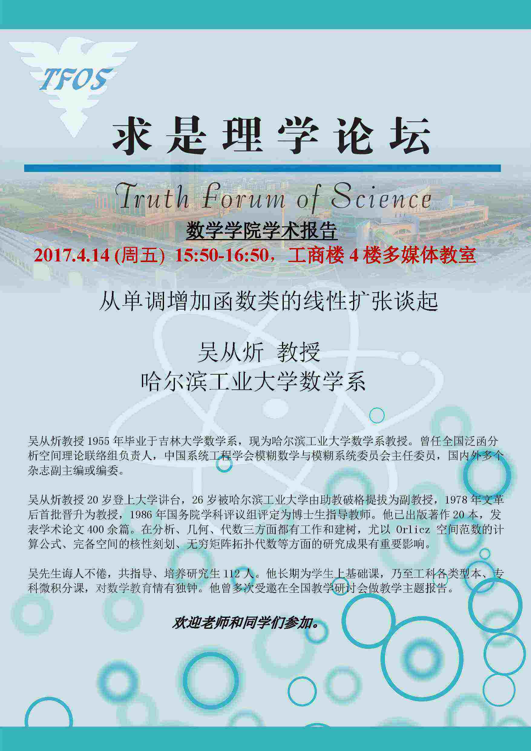 学术科研 学术团队 学术活动 学术会议 学术报告 讨论班 School Colloquium 信息公告 文件汇编 学术报告 华体会(中国) > (4月14日)从单调增加函数类的线性扩张谈起 来源:数学科学学院 发布时间:2017-04-13 859