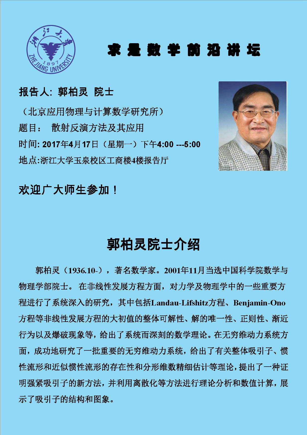 学术科研 学术团队 学术活动 学术会议 学术报告 讨论班 School Colloquium 信息公告 文件汇编 学术报告 华体会(中国) > 求是数学前沿讲坛之郭柏灵院士讲座 来源:数学科学学院 发布时间:2017-04-14 1103