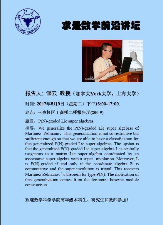 通知公告 通知公告 学术活动 学术会议 新闻图片 院系新闻 院内邮件 2017 华体会(中国) > (5月9日)求是数学前沿论坛之郜云教授讲座 来源:数学科学学院 发布时间:2017-05-07 954