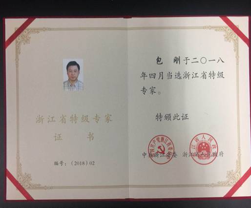 2018年4月11日上午,浙江省科学技术奖励大会在省人民大会堂隆重举行。华体会网页版包刚教授被授予第五批浙江省特级专家。
