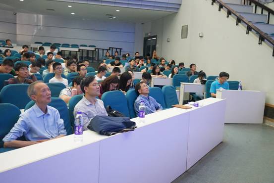 最后,严加安院士引经据典。他借用陈省身、华罗庚、苏步青等人的数学诗,向同学们分享了他对于数学之美的一些心得和看法。而且他还鼓励同学们努力学习,在不断的学习实践中积极探寻数学的诗意和优美。在之后的提问环节中,严加安院士还和同学们进行了深入而密切的交流,同学们都受益匪浅。