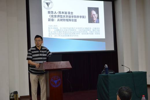 5月18日上午,在浙江大学玉泉校区邵逸夫科技馆117报告厅陈木法院士进行了题为“从对称矩阵谈起”的公众演讲。演讲开始前,华体会网页版院长包刚致辞欢迎陈院士的到来。数学科学学院党委书记闻继威,副院长郜传厚,林正炎教授,苏中根教授,张立新教授,黄正达教授等出席了本次讲座。