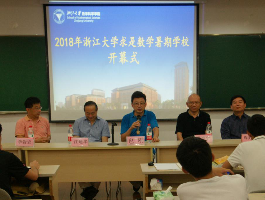 7月23日,2018年浙江大学求是数学暑期学校在浙江大学玉泉校区工商楼4楼报告厅顺利开幕。华体会网页版院长包刚教授、美国明尼苏达大学江迪华教授、美国罗格斯大学李岩岩教授、美国杨伯翰大学吕克宁教授、美国佐治亚理工大学周好民教授等师生,浙江大学求是科学班(数学) 的学生以及来自全国各高校的共六十多名暑期学校学员参加了开幕式。