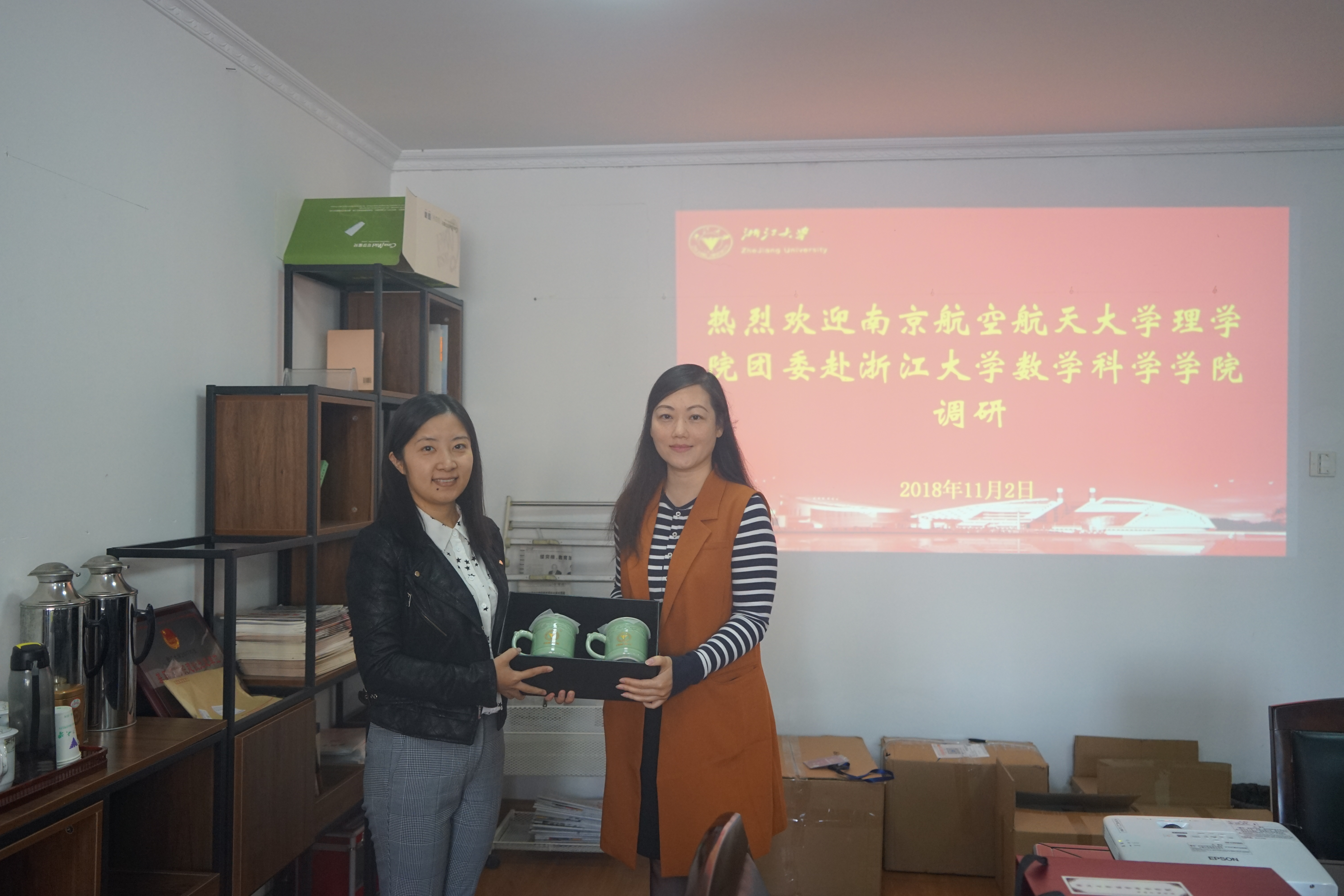 首先,数学科学学院党委副书记姚晨书记代表华体会网页版党委对南京航空航天大学理学院团委的访问表示了热烈的欢迎并赠送纪念品,姚老师提出希望今后两院团委可以不断加强交流学习,优势互补、共同发展。