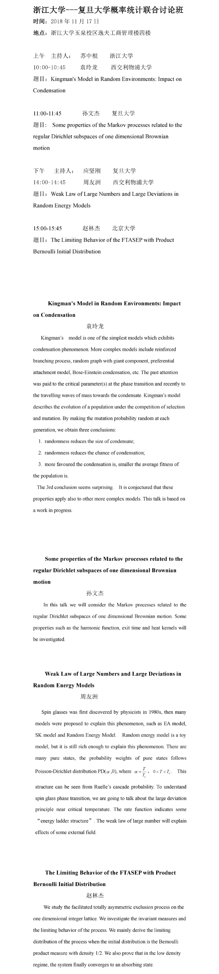 学术科研 学术团队 学术活动 学术会议 学术报告 讨论班 School Colloquium 信息公告 文件汇编 讨论班 华体会(中国) > 浙江大学---复旦大学概率统计联合讨论班 来源:数学科学学院 发布时间:2018-11-04 1018 联系人:赵敏智 zhaomz@zju.edu.cn