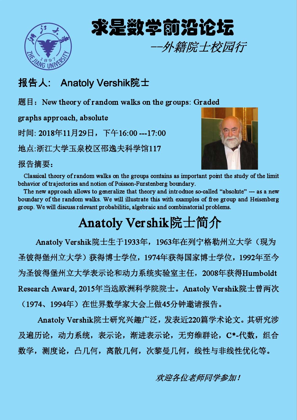 学术科研 学术团队 学术活动 学术会议 学术报告 讨论班 School Colloquium 信息公告 文件汇编 2018 华体会(中国) > 求是数学前沿论坛之Anatoly Vershik院士讲座 来源:数学科学学院 发布时间:2018-11-23 1291