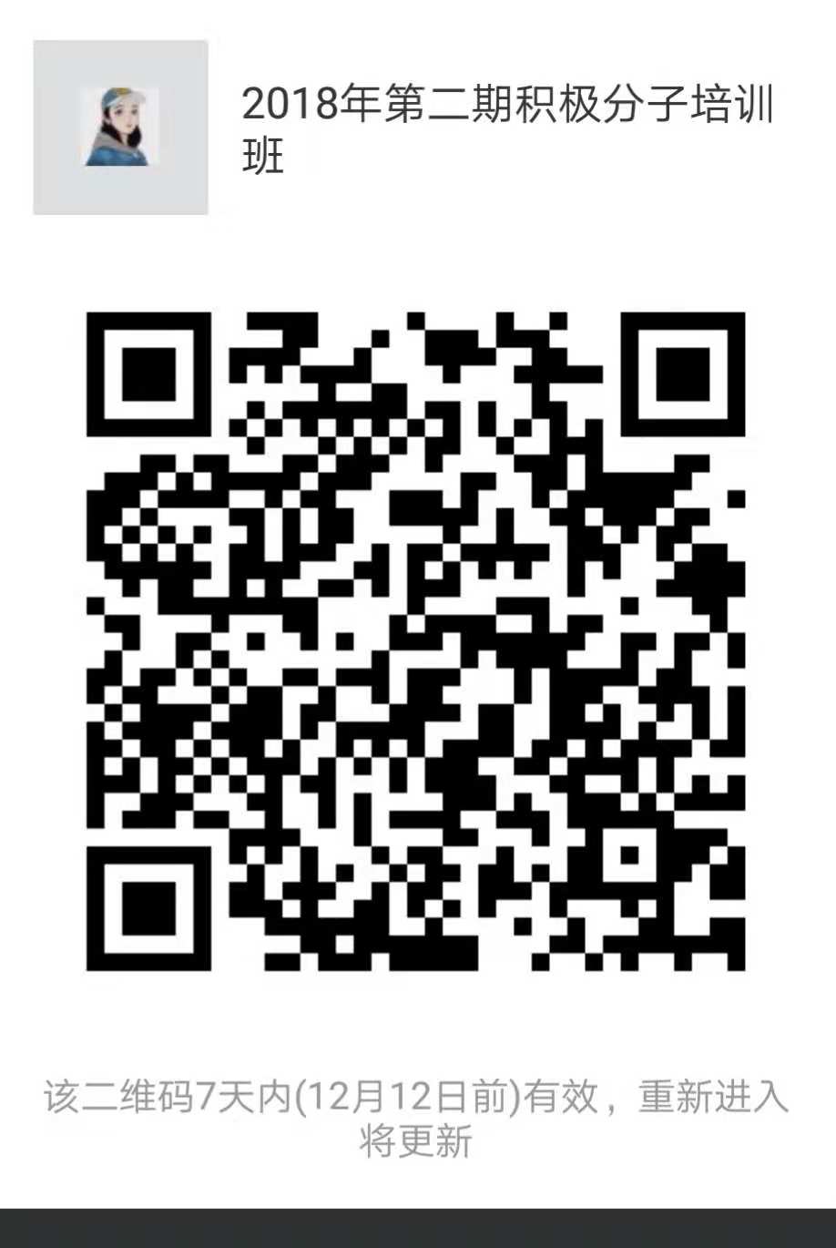 请数学科学学院2018年第二期积极分子培训班学员(详见附件名单),扫描以下二维码加入“2018年第二期积极分子培训班”群。若已参加过学园积极分子培训班并以取得结业证书的同学,请联系李玉婷老师进行登记。如有任何问题请及时相关负责老师。
