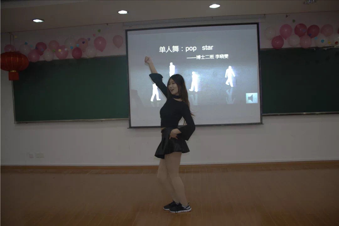 抽奖过后,来自数应17级的唐亦农和张泽暄同学表演了说唱版的《说散就散》。熟悉的歌曲通过新的音乐形式来呈现,令人耳目一新。数应1602班带来的话剧《灰小子》对经典的童话故事《灰姑娘》进行了“本土化”的改编,以幽默诙谐的叙述方式讲述了一个有关数学的喜剧故事,有趣的“数学梗”也博得同学们的阵阵欢笑。精彩的话剧节目过后,18级基础数学硕士班的崔星华学长倾情献唱《lemon》,18级博士二班的李晓雯学姐也带来了充满活力的单人舞《pop star》。随后现场又进行了第二轮的游戏环节和抽奖,这次猜糖水浓度的游戏活动也吸引了现场老师的踊跃参与,又一轮幸运儿的抽奖也将气氛推向了高潮。