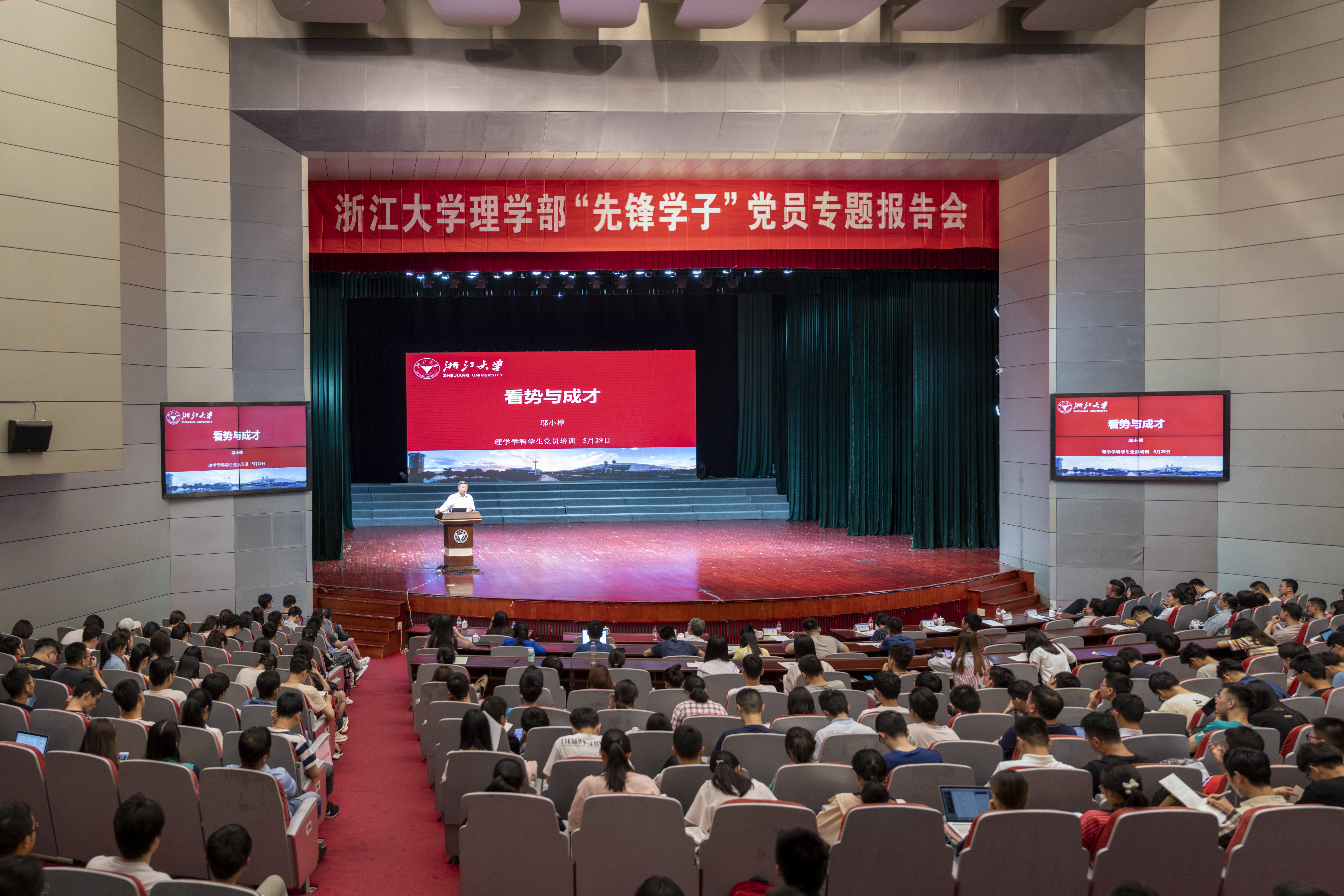 为进一步加强党员的教育培养,扎实推进“两学一做”学习教育工作的深入开展,传承理学各院系深厚的历史底蕴,激发新时代理学党建工作的活力。2019年5月29日,“弘扬浙大理学优秀传统,争做新时代创新型人才――‘先锋学子’党员专题学习会暨理学各党委联学联建活动启动仪式”在浙江大学玉泉校区永谦活动中心剧场顺利举办。本次专题学习会由数学科学学院党委、物理学系党委、化学系党委、地球科学学院党委、心理与行为科学系党委联合举办。浙江大学党委副书记邬小撑应邀参加了理学各党委联学联建活动启动仪式,并以“看势与成才”为主题做专题学习报告。