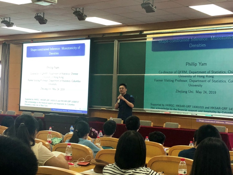 2019年5月22日-26日,来自香港中文大学统计系的16位学生在香港中文大学统计系任尚志副教授、魏颖颖助理教授的带领下来到浙江大学,进行为期5天的科研交流访问,访问活动主要以学术交流和校园参观的形式展开。本次科研交流项目受教育部“香港与内地高等学校师生交流计划(万人计划)”资助,在国合处港澳台办的支持下,由数学科学学院主办。