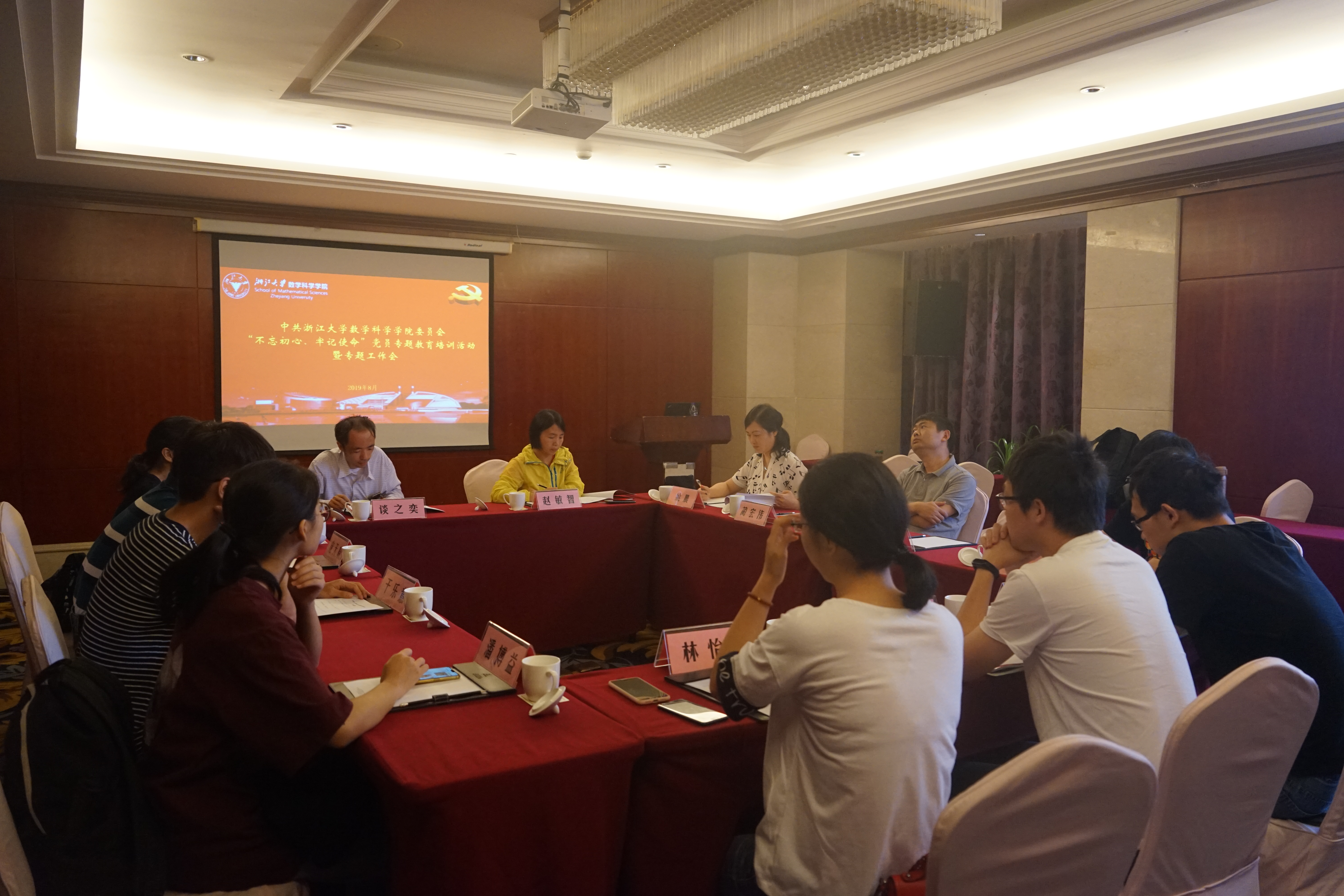 为深入学习贯彻落实习近平总书记在 “不忘初心、牢记使命”主题教育工作会议上的重要讲话精神,坚持贯彻守初心、担使命,找差距、抓落实的总要求,推进学院“双一流”建设各项工作。数学科学学院党委于2019年8月30日至8月31日在温州平阳县开展了“不忘初心、牢记使命”党员专题教育培训活动暨专题工作会。此次主题教育学习活动由学院党委书记闻继威主持,学院班子成员、基层组织负责人、三会负责人、教工及学生党支部委员会成员、教师党员及学生党员代表共同参与。此次活动有幸邀请到了温州市委党校党史党建教研部主任梁德君教授为党员们作“弘扬党的优良传统,不忘初心砥砺前行”专题报告。党员们通过苏步青励志教育馆的走访学习、集体宣誓,针对“不忘初心、牢记使命”专题教育活动、学院巡察整改落实工作及新学期党建及“双一流”建设工作设想的交流研讨,进一步将新时代数学人的初心和历史使命内化于心,也将更好地将党员的先锋模范作用外化于行。