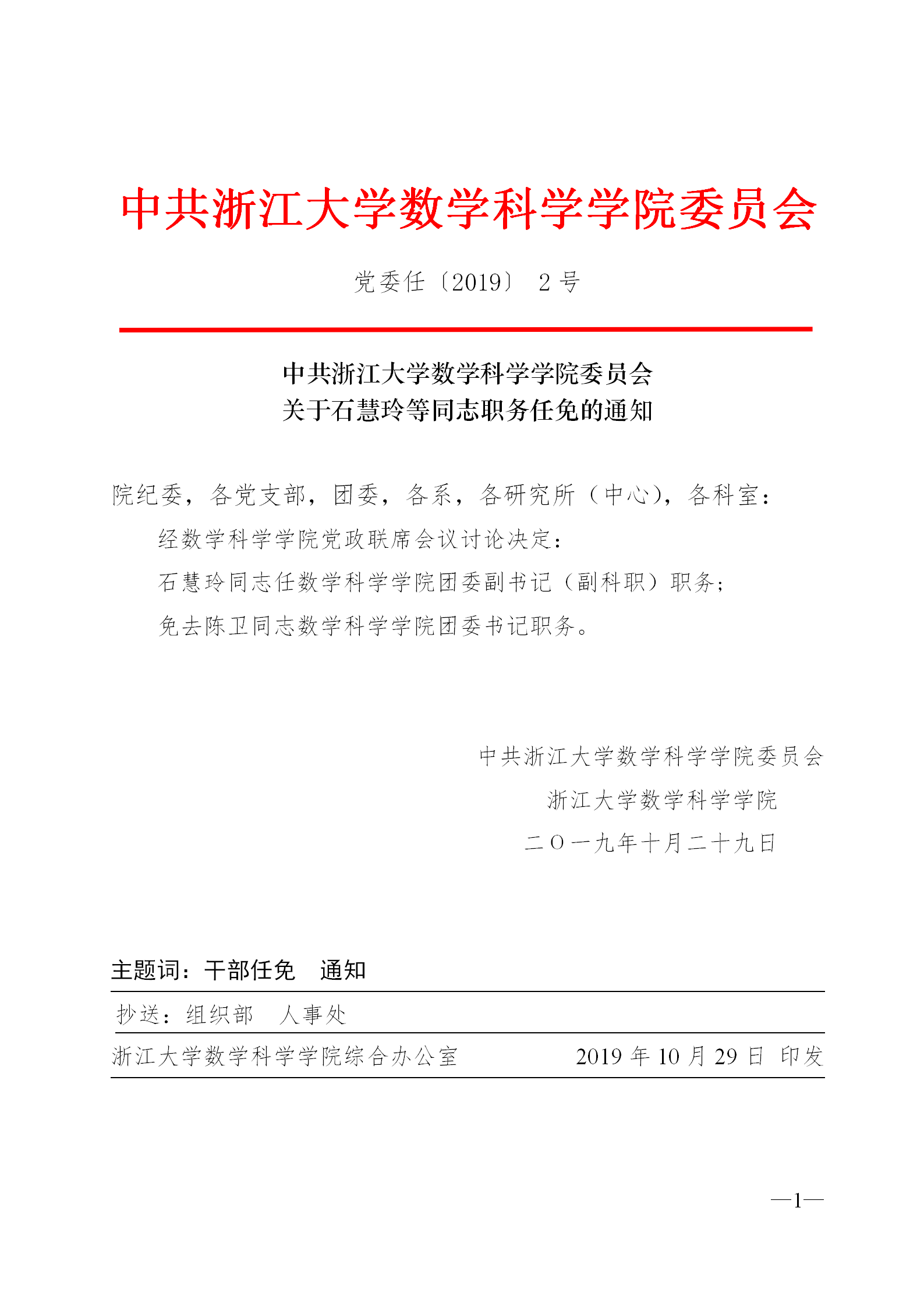 通知公告 通知公告 重要通知 本科生 研究生 科研 教学 人事 公示 学术活动 学术会议 新闻图片 院系新闻 院内邮件 公示 华体会(中国) > 中共华体会网页版委员会 党委发【2019】2号 中共华体会网页版委员会 关于李萌等同志职务任免的通知 来源:数学科学学院 发布时间:2019-10-29 730