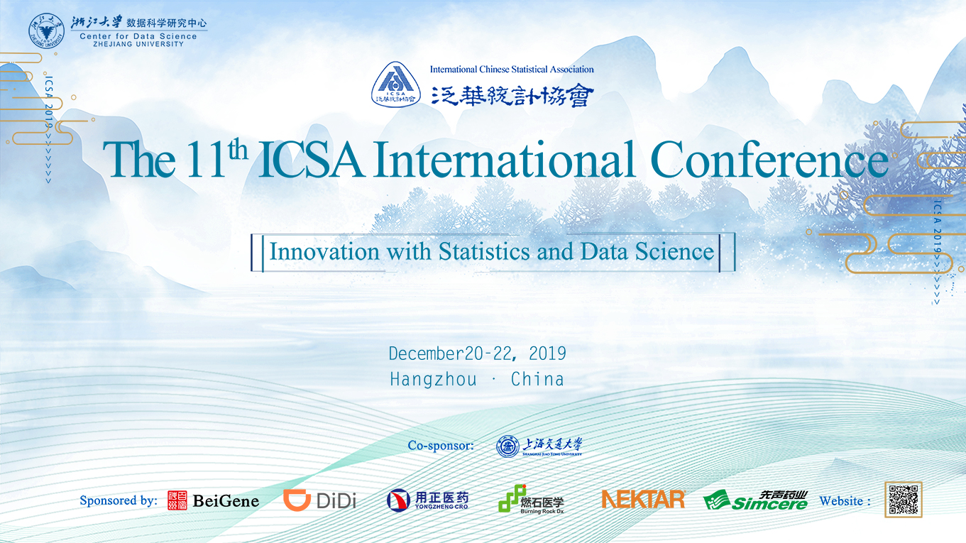 浙江大学将于2019年12月20日至22日在浙江省杭州市黄龙饭店举办第十一届泛华统计协会大会:统计与数据科学主导的创新(The11th ICSA International Conference of International Chinese StatisticsAssociation: Innovation with Statistics and DataScience)。