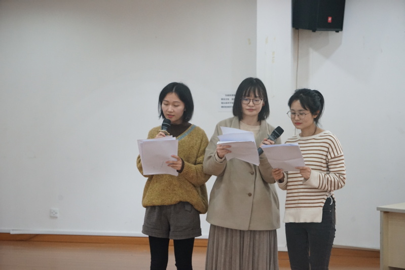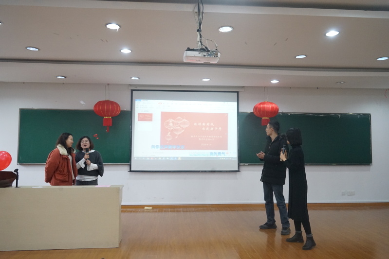 冬去春来燕归来,又是一年新春到。2020年1月17日,数学科学学院机关“歌颂新时代、欢庆庚子年”新春歌咏比赛暨年终总结大会在玉泉校区工商楼四楼报告厅举行。学院党委书记闻继威老师、副党委副书记姚晨老师、综合办公室主任周利平老师、团委书记邵頔老师等学院领导和机关行政教职工、团委辅导员等老师参与交流联欢活动。此次交流会由辅导员石慧玲、任泊阳主持。