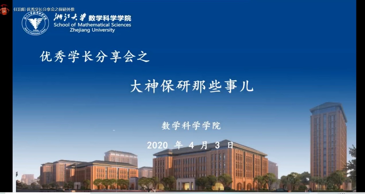 为了引导并帮助同学们进行升学规划,数学科学学院于2020年4月3日下午2:00,举办了“大神保研那些事”——线上经验分享会。会议邀请了7位2016级的优秀学长学姐,以过来人的视角,为数学科学学院的学子全面地介绍各校保研备考经验、深度剖析升学选择、解答常见疑难困惑。