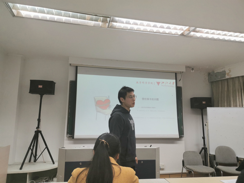 2019年12月28日晚上18:30,数应1601班、数应1602班和统计1601班联合召开“核心价值观进班级”主题班会。本次班会邀请到 “核心价值观进班级”讲师团的讲师、2018级计算数学博士黄振杰学长关于“道德修炼的正确方法”主题进行了分享。