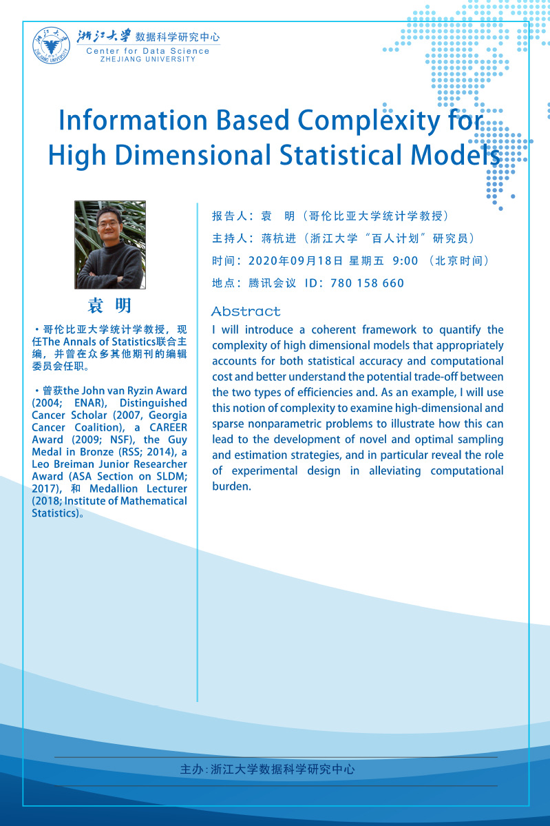 通知公告 通知公告 学术活动 学术会议 新闻图片 院系新闻 院内邮件 2020 华体会(中国) > Information Based Complexity for High Dimensional Statistical Models 来源:数学科学学院 发布时间:2020-09-17 475
