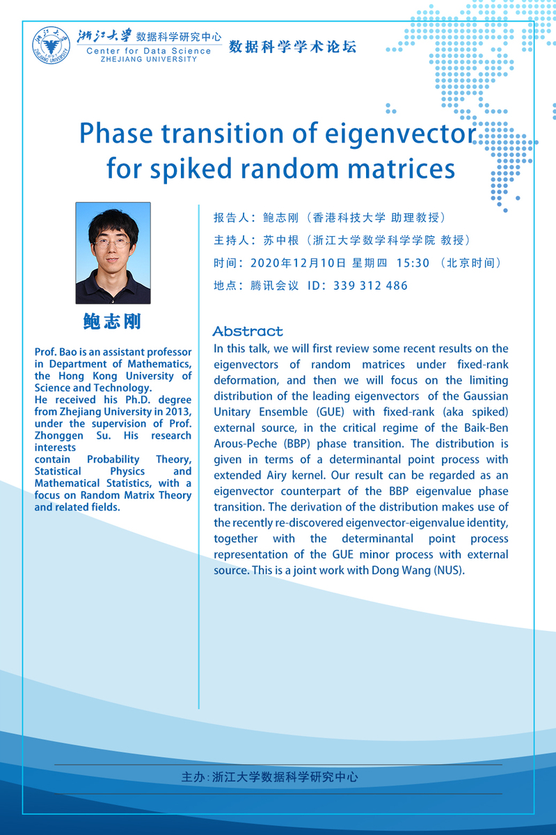 学术科研 学术团队 学术活动 学术会议 学术报告 讨论班 School Colloquium 信息公告 文件汇编 2020 华体会(中国) > Phase transition of eigenvector for spiked random matrices 来源:数学科学学院 发布时间:2020-12-02 592