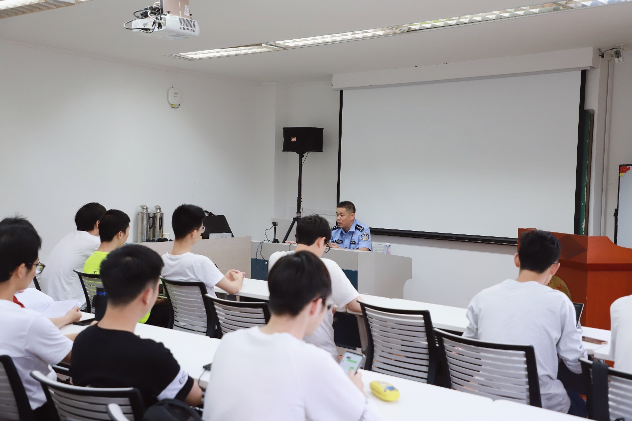 随后,胡警官结合从警多年来的实践经验,分析了发生在周边的真实案例,通过剖析诈骗套路和话术,围绕如何提高同学们的自我防范意识和自我保护能力,提供了极具针对性的应对策略和方法。