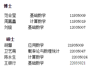 附:数学科学学院2020-2021学年研究生国家奖学金评选结果