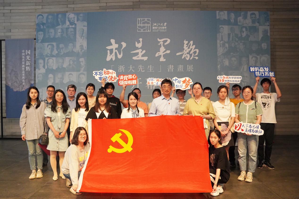 近日,数学科学学院机关教工党支部与数学与应用数学专业本科生党支部联合开展“求是墨韵——‘浙大先生’书画展”参观学习暨学科初心故事专题寻访活动。共有30余名师生党员参与此次活动,学院党委书记陈庆、党委副书记孙凯出席活动。