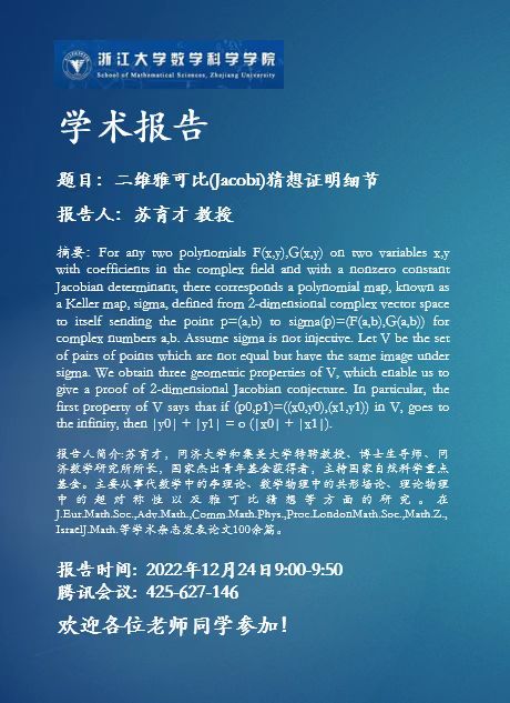 学术科研 学术团队 学术活动 学术会议 学术报告 讨论班 School Colloquium 信息公告 文件汇编 2022 华体会(中国) > 二维雅可比(Jacobi)猜想证明细节 来源:数学科学学院 发布时间:2022-12-23 867