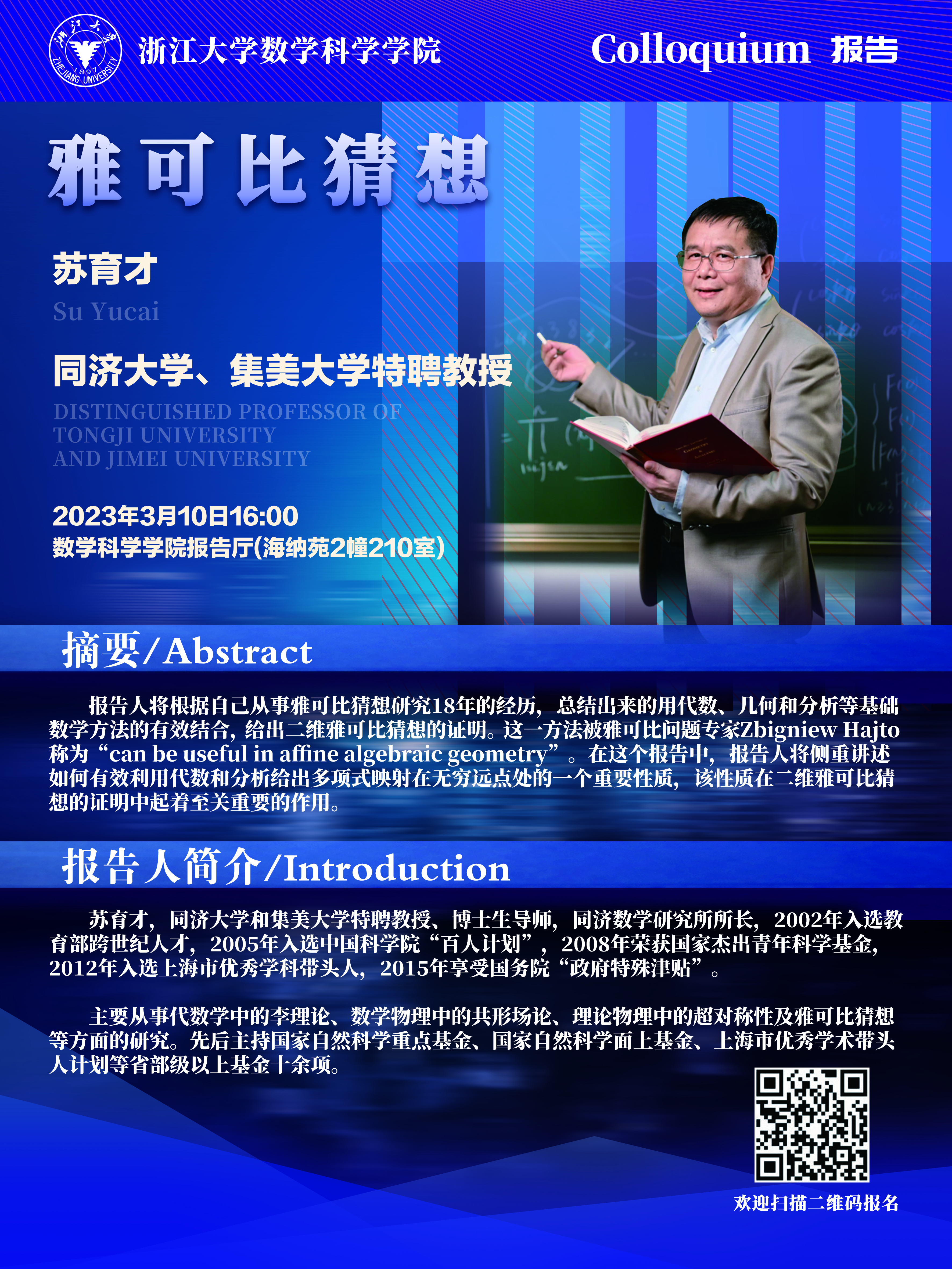学术科研 学术团队 学术活动 学术会议 学术报告 讨论班 School Colloquium 信息公告 文件汇编 学术报告 华体会(中国) > Colloquium报告——雅可比猜想 来源:数学科学学院 发布时间:2023-03-06 640
