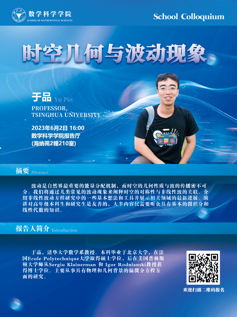 学术科研 学术团队 学术活动 学术会议 学术报告 讨论班 School Colloquium 信息公告 文件汇编 School Colloquium 华体会(中国) > School Colloquium:时空几何与波动现象 来源:数学科学学院 发布时间:2023-05-30 535