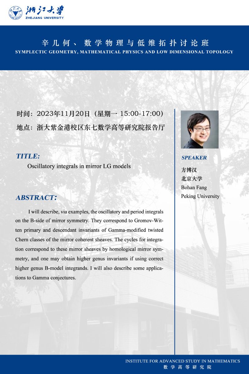学术科研 学术团队 学术活动 学术会议 学术报告 讨论班 School Colloquium 信息公告 文件汇编 讨论班 华体会(中国) > 辛拓扑与物理讨论班——Oscillatory integrals in mirror LG models 来源:数学科学学院 发布时间:2023-11-30 324