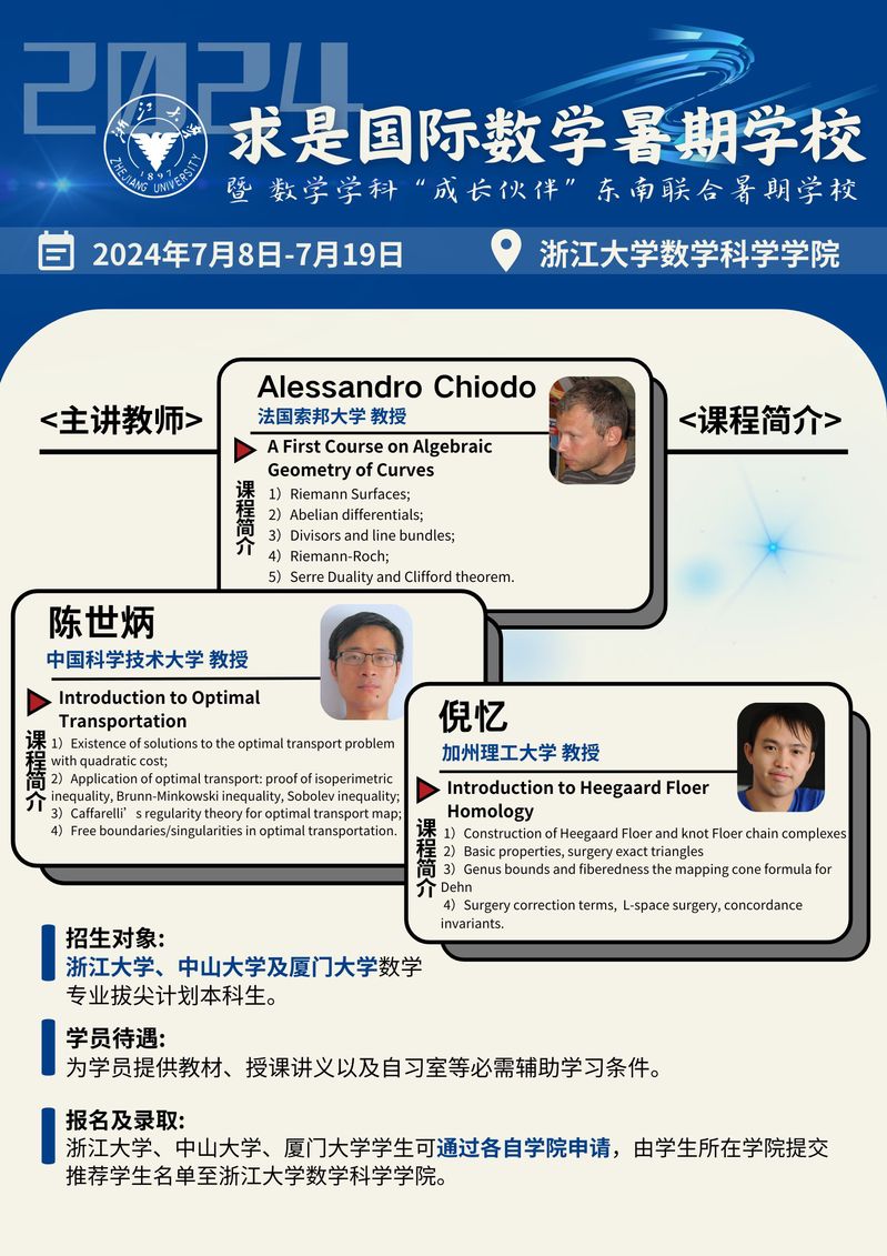 通知公告 通知公告 重要通知 本科生 研究生 科研 教学 人事 公示 学术活动 学术会议 新闻图片 院系新闻 院内邮件 本科生 华体会(中国) > 2024年浙江大学求是国际数学暑期学校暨数学学科“成长伙伴”东南联合暑期学校 来源:数学科学学院 发布时间:2024-06-06 3416