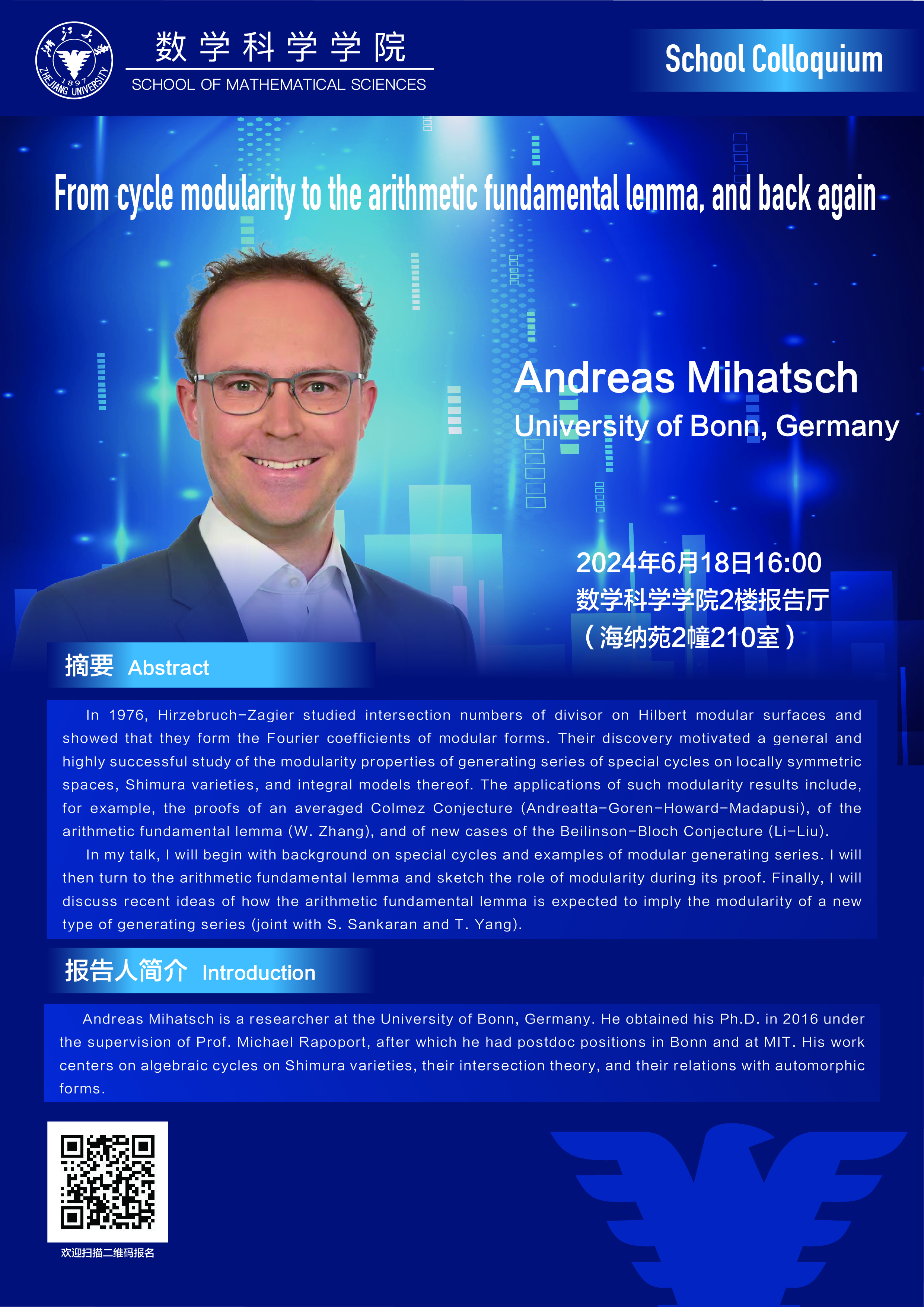 学术科研 学术团队 学术活动 学术会议 学术报告 讨论班 School Colloquium 信息公告 文件汇编 School Colloquium 华体会(中国) > From cycle modularity to the arithmetic fundamental lemma, and back again 来源:数学科学学院 发布时间:2024-06-17 121