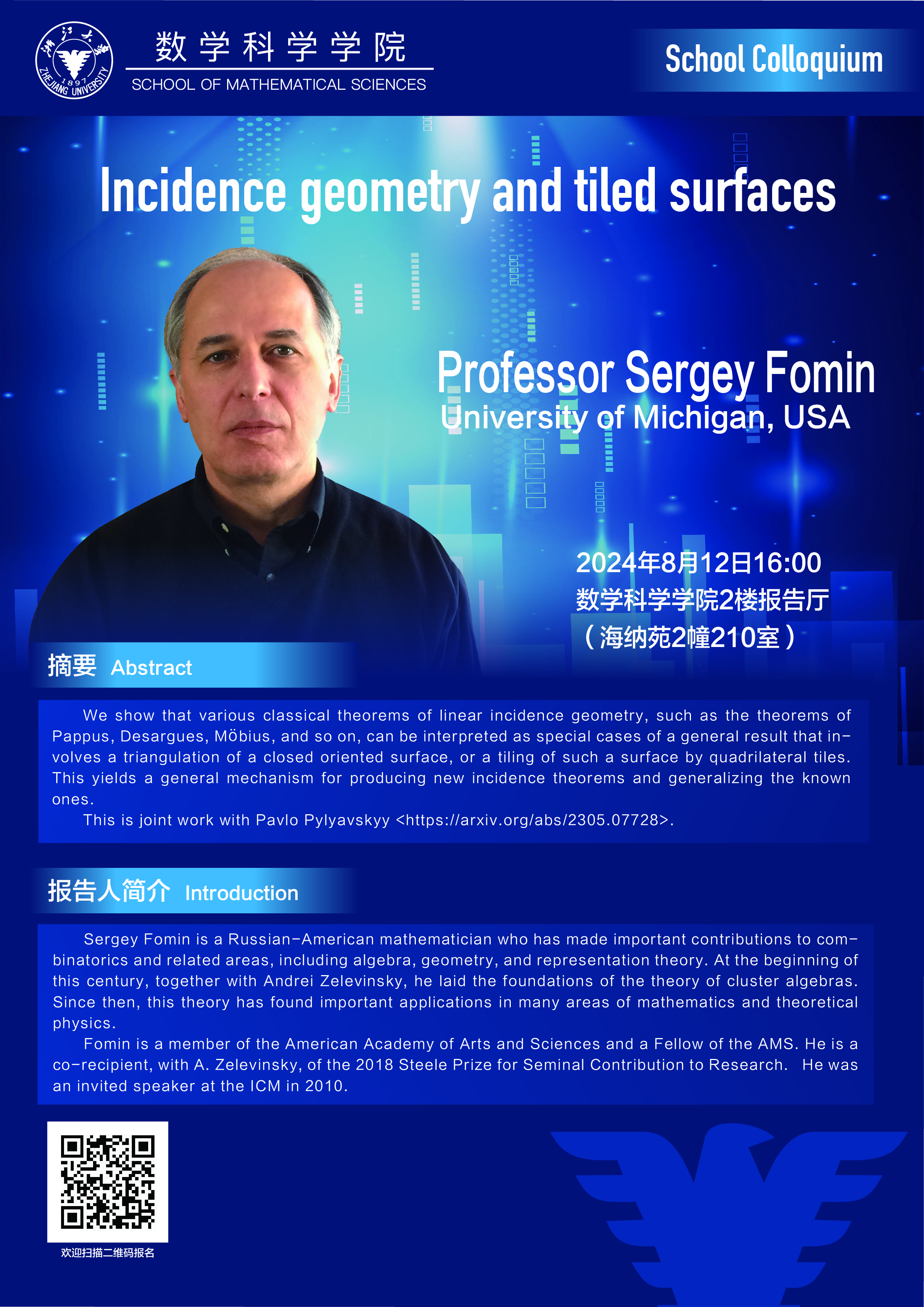 学术科研 学术团队 学术活动 学术会议 学术报告 讨论班 School Colloquium 信息公告 文件汇编 School Colloquium 华体会(中国) > Incidence geometry and tiled surfaces 来源:数学科学学院 发布时间:2024-07-29 131