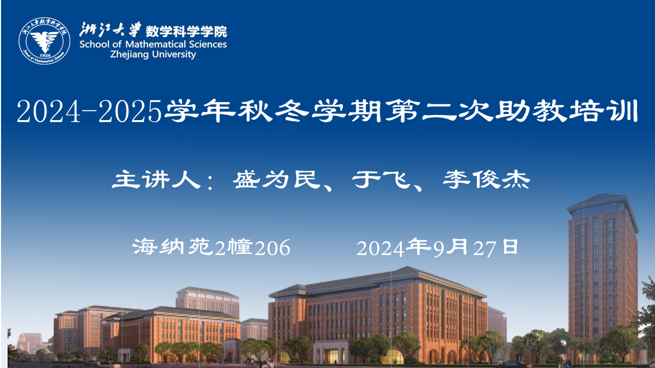 本科生 信息公告 教研动态 代数和几何系列 分析和方程系列 统计学系列 信息与计算科学系列 微积分系列 线性代数系列 高等数学系列 微分方程与复变函数系列 其他 学籍管理 实践教学 对外交流 培养方案 政策文件 会议纪要 其他 华体会(中国) > 2024-2025学年秋冬学期第二次助教培训会议 来源:数学科学学院 发布时间:2024-09-29 104