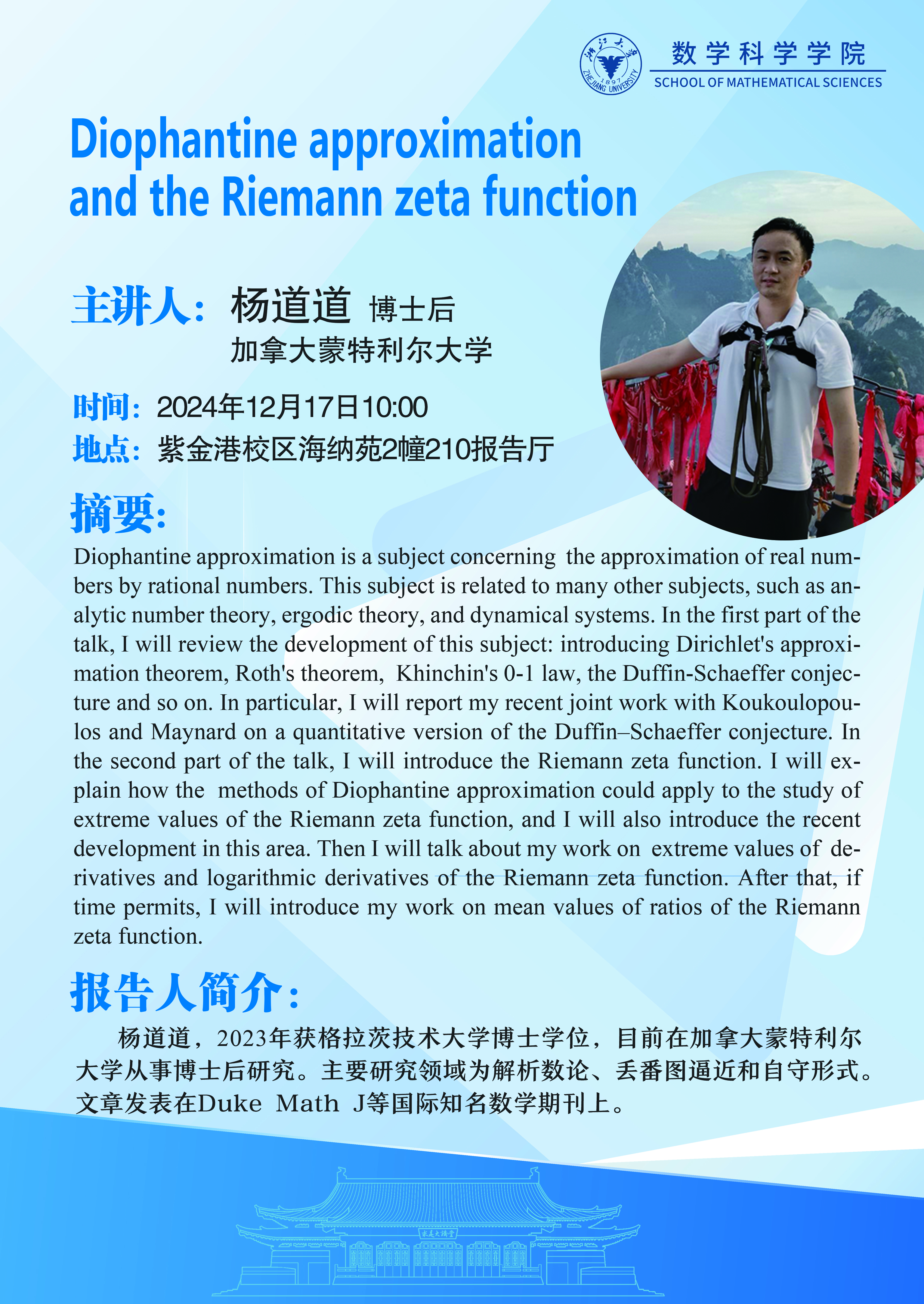 学术科研 学术团队 学术活动 学术会议 学术报告 讨论班 School Colloquium 信息公告 文件汇编 School Colloquium 华体会(中国) > Diophantine approximation and the Riemann zeta function 来源:数学科学学院 发布时间:2024-12-15 182