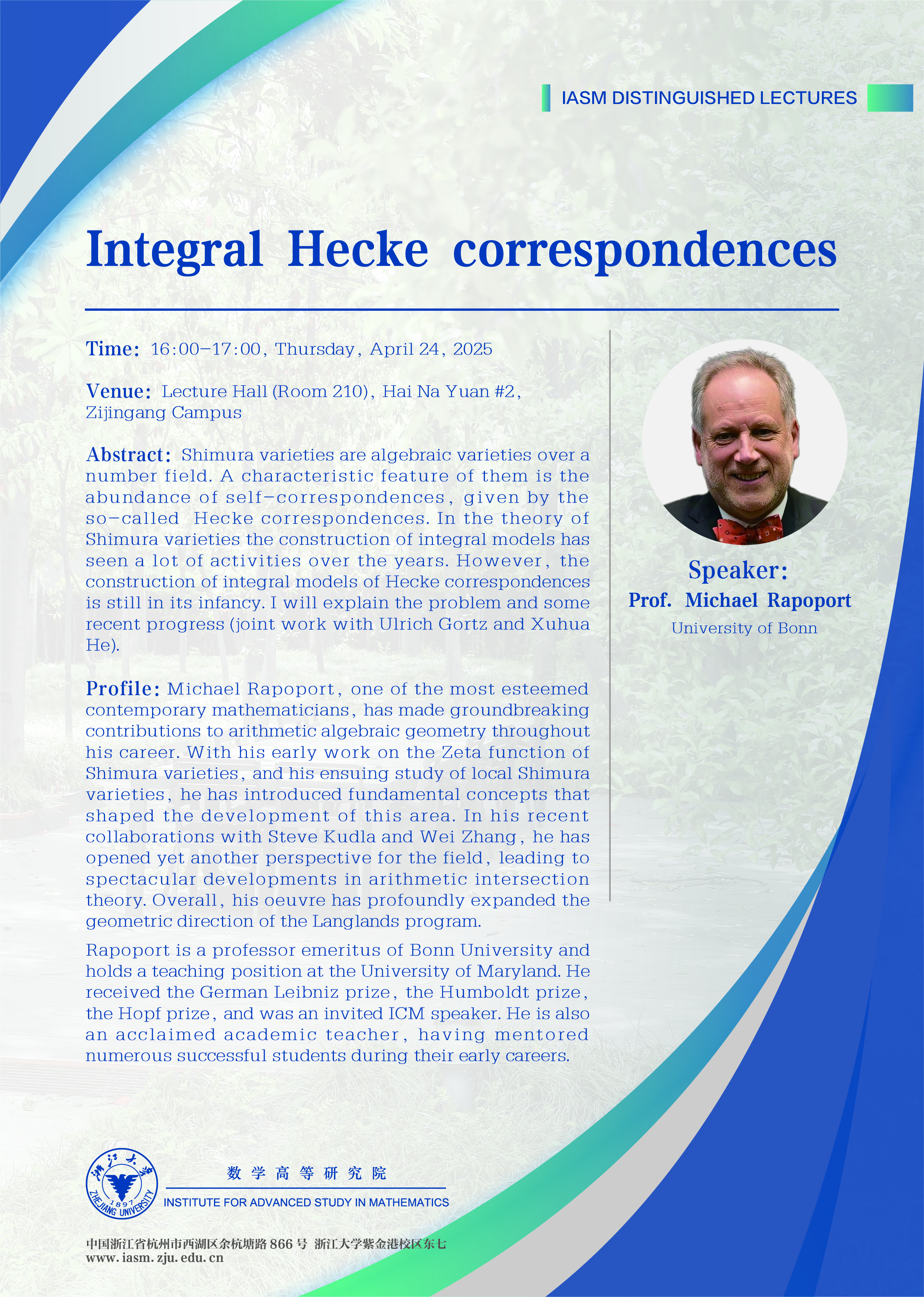 学术科研 学术团队 学术活动 学术会议 学术报告 讨论班 School Colloquium 信息公告 文件汇编 School Colloquium 华体会(中国) > IASM Distinguished Lectures——Integral Hecke correspondences 来源:数学科学学院 发布时间:2025-04-24 136