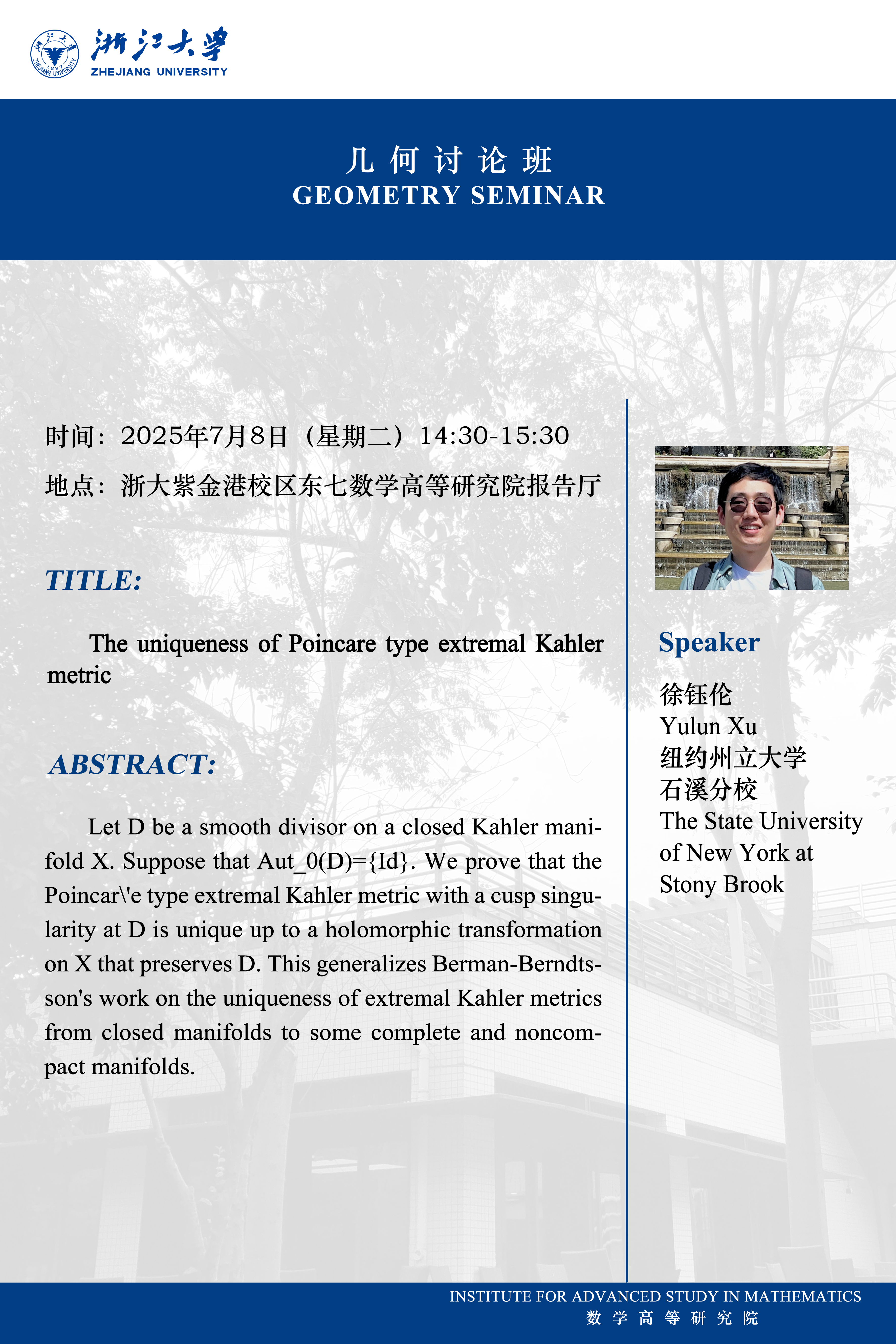 学术科研 学术团队 学术活动 学术会议 学术报告 讨论班 School Colloquium 信息公告 文件汇编 讨论班 华体会(中国) > 几何讨论班 来源:数学科学学院 发布时间:2025-07-03 265