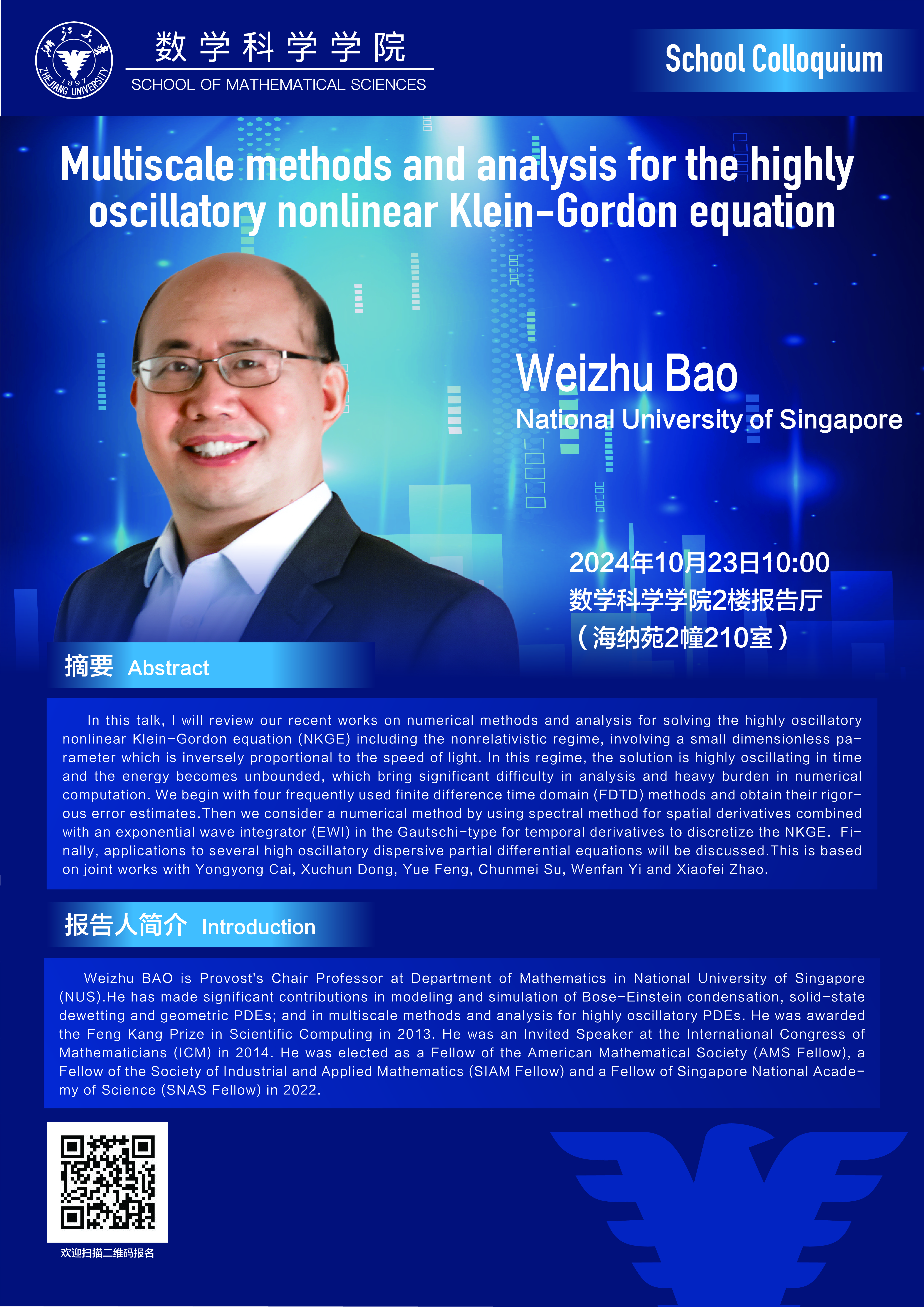 School Colloquium——Multiscale methods and analysis for the highly oscillatory nonlinear Klein-Gordon equation