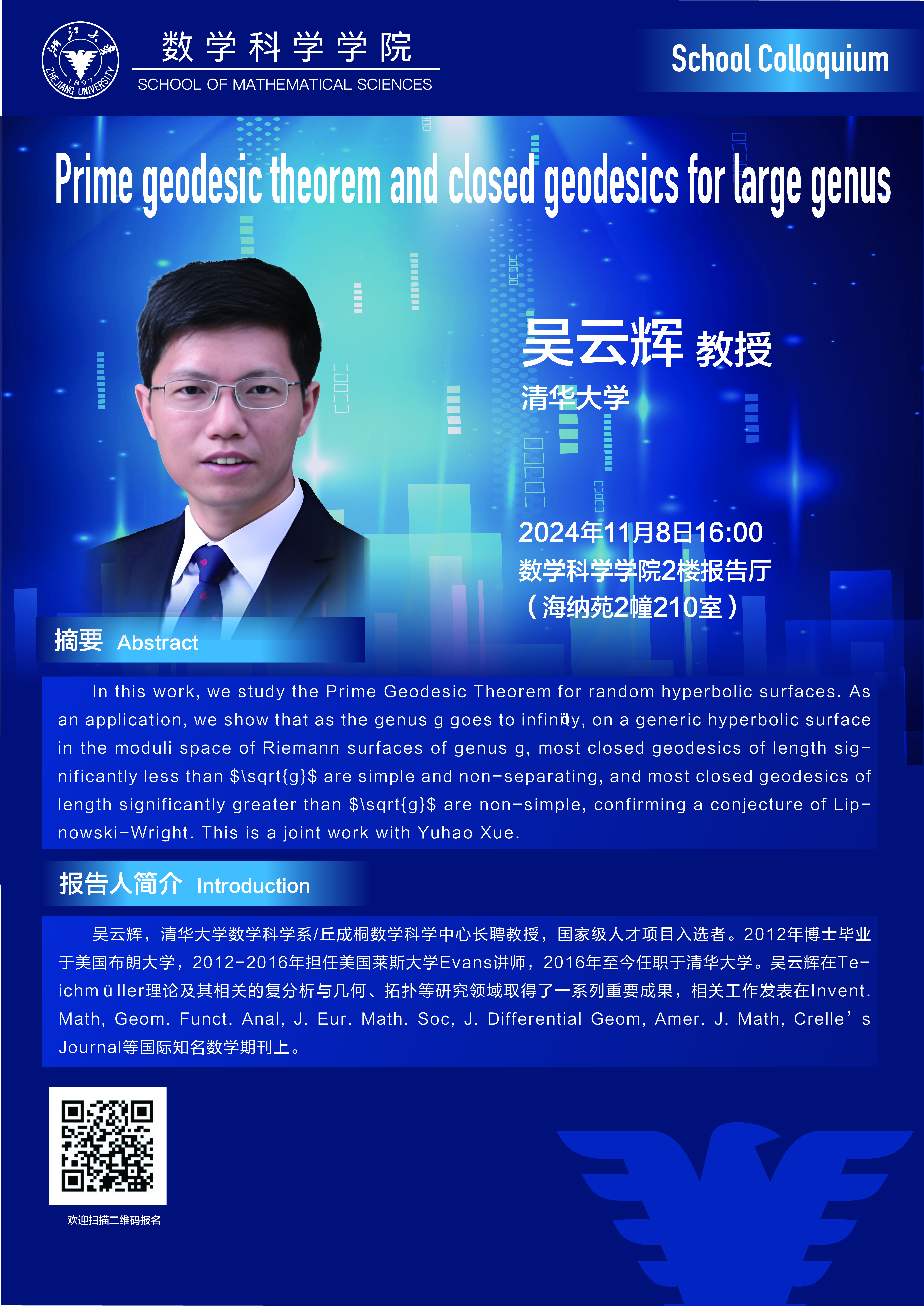 School Colloquium——Prime geodesic theorem and closed geodesics for large genus
